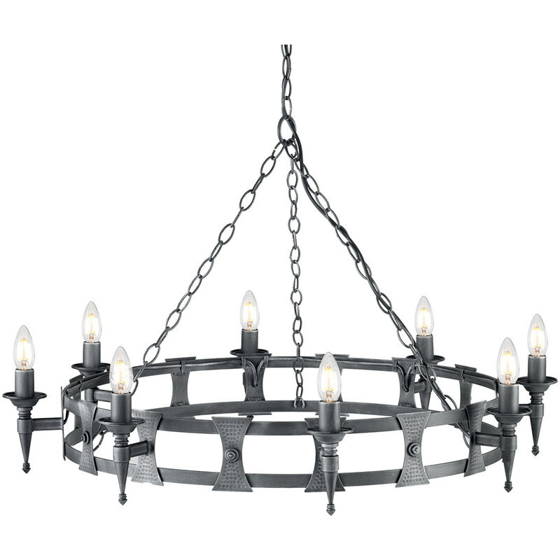 Elstead Saxon - Lampadario a 8 luci Nero, Finitura Argento, E14 | Finitura: nero, argento | Classificazione IP: IP20 | Altezza (cm): 58,5 | Larghezza (cm): 90 | Numero di luci: 8 | Tipo di lampada: E14 | Dimmerabile: Sì | Potenza (max): 60 | Peso (kg): 13 | Classe: 1 (con messa a terra)