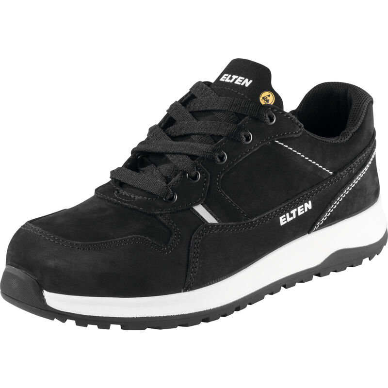design sportivo ed elegante colorazione nera. * Tomaia in Nubuk idrorepellente. * Fodera in tessuto traspirante. * Linguetta imbottita. * Soletta plantare SPORTIVE ESD. * Suola in gomma/PU E-TRACK, antiscivolo. * Caratteristiche ESD. Norma: EN ISO 20345:2011 S3 SRC Einlagenversorgung baumustergeprüft nach DGUV Regel 191. Dati tecnici Proprietà elettrostatiche EGB/ESD Tipo di prodotto Calzatura bassa di sicurezza Serie JOURNEY Genere da uomo Norma Fornitura di inserti omologati a norma DGUV 191 Colore nero Grado di protezione S3 Resistenza antiperforazione Tessuto Numero di scarpa UE 45 Materiale puntale protettivo Acciaio