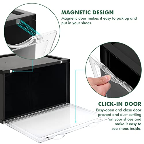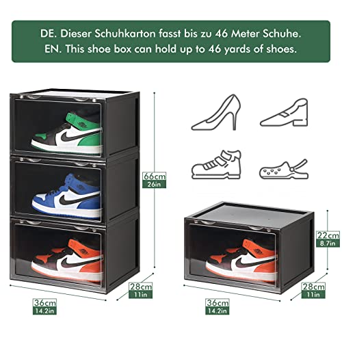 ELUCHANG Contenitore impilabile per scarpe, confezione da 3 scatole di visualizzazione in plastica trasparente per scarpe da ginnastica, contenitore per scarpe adatto fino a US Taglia 13, nero