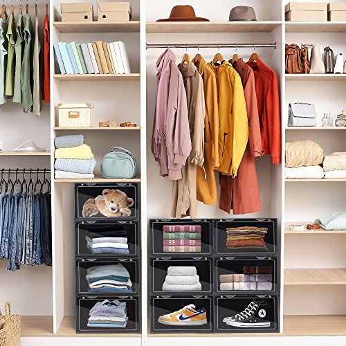 Dimensioni più grandi: ogni scatola per scarpe è di 13,9 "L x 21,1 "W x 20,5 "H, si adatta a scarpe fino alla taglia 13. Ideale per scarpe da ginnastica alte, scarpe di grandi dimensioni, tacchi alti.