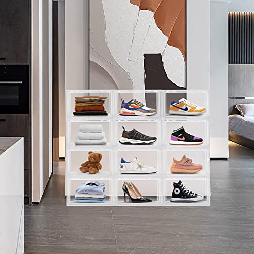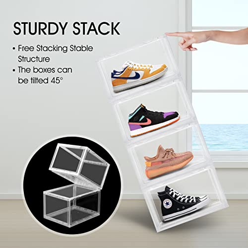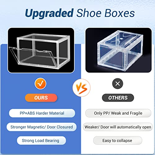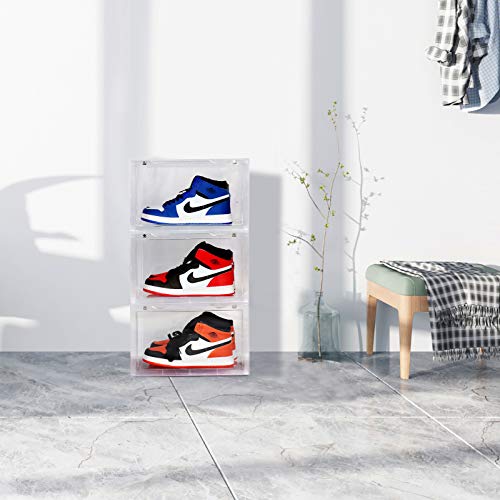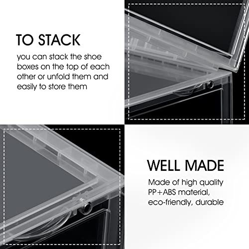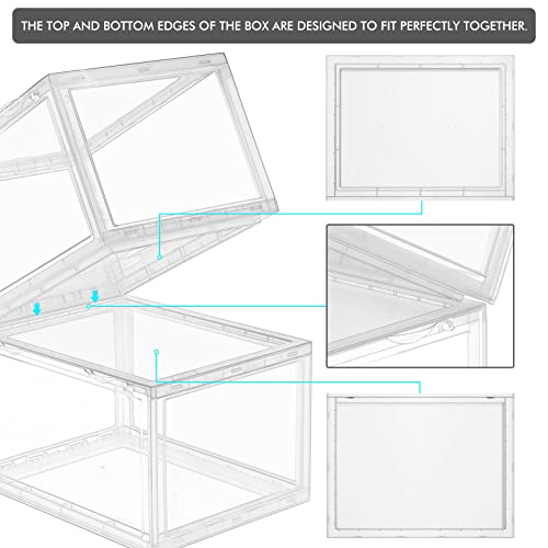 Dimensioni più grandi: ogni scatola per scarpe è di 13,9 "L x 21,1 "W x 20,5 "H, si adatta a scarpe fino alla taglia 13. Ideale per scarpe da ginnastica alte, scarpe di grandi dimensioni, tacchi alti.