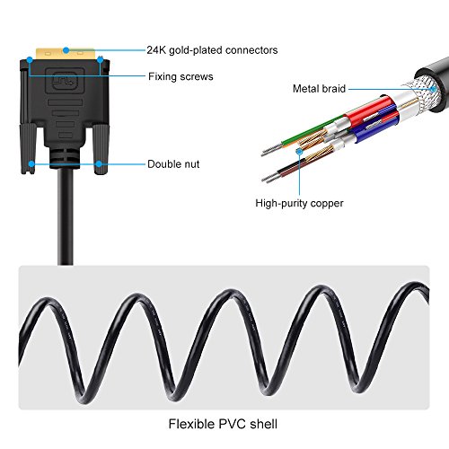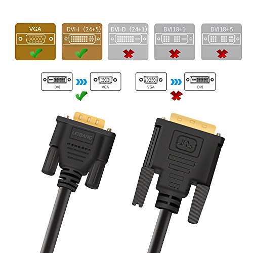 ELUTENG DVI 24+5 Male to VGA Male Cable, can convert DVI Digital signal into VGA analog signal, and display on VGA monitor***Do not support VGA to DVI reverse function