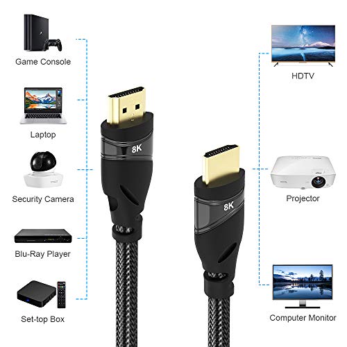【Cavo HDMI 2.1 3m】3 metri di lunghezza per soddisfare le tue diverse esigenze. Supporta una gamma di risoluzioni video e frequenze di aggiornamento più elevate, tra cui 8K UHD 7680 * 4320 HDR / 8K a 60Hz e 4K a 120Hz per fornire una visione immersiva e dettagli fluidi in movimento veloce. Compatibile anche con le versioni HDMI 2.0b / 2.0a / 2.0 / 1.4 / 1.3 / 1.2 / 1.1. * Si noti che con questo cavo, il dispositivo deve soddisfare i requisiti di HDMI 2.1*