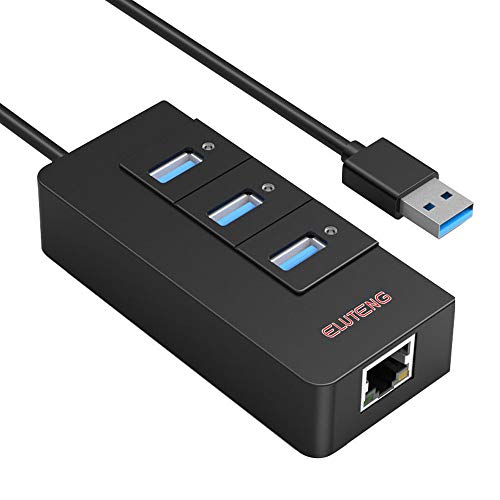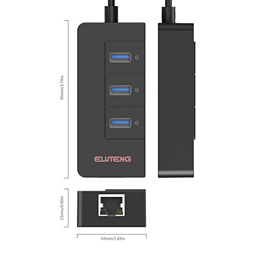 ELUTENG 3 Port USB3.0 Hub with Gigabit Ethernet Adapter can connect 3 USB devices and 1 ethernet cable, let you enjoy USB extension and superfast network speed.