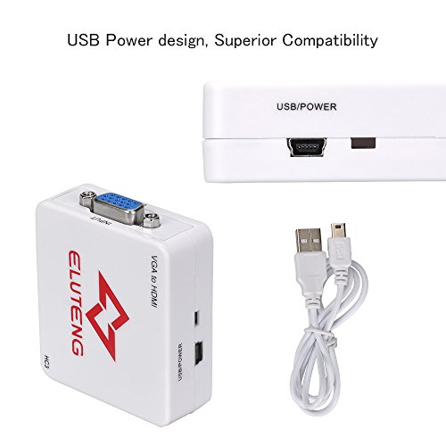 ELUTENG VGA to HDMI Converter, VGA to HDMI Adapter with Audio, Full HD 1080P Convert for HDTV, Desktop, Laptop, And Projector