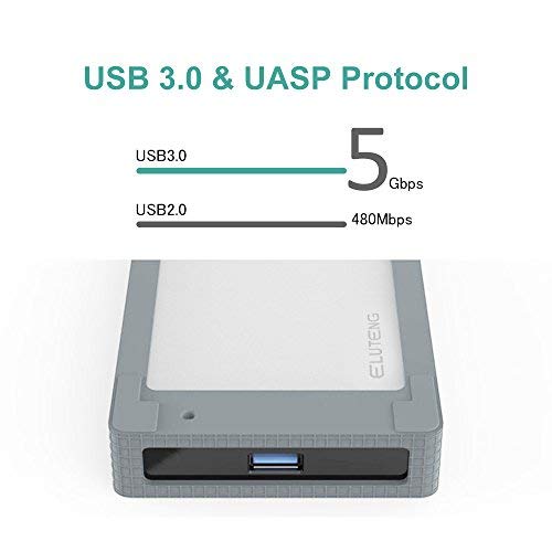 ELUTENG 2.5 Inch SATA 3.0 External Hard Drive Enclosure, suitable for 7-9.5mm 2.5inch SSD/HDD, SATA 3.0 backward compatible with SATA2.0/ SATA1.0