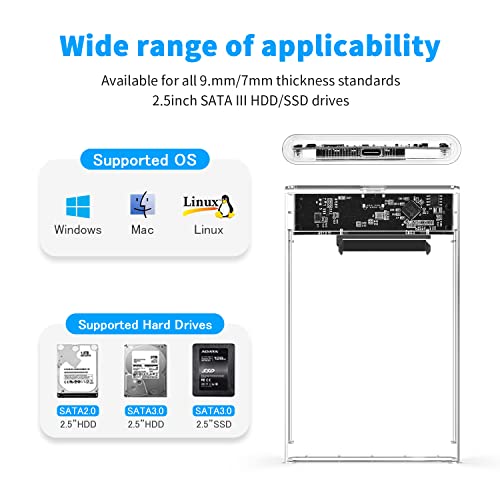 [Compatibile con dischi rigidi da 9,5 mm/7 mm di spessore] ELUTENG Custodia per disco rigido da 2,5 pollici USB3.1 GEN 1 Type-C a SATA III. Compatibile con tutti i dischi rigidi/SSD SATA da 2,5" di spessore 9,5/7 mm e standard. Può supportare dischi rigidi/SSD da 2,5", compatibili con sistemi Mac/Windows/Linux e PC. Può supportare dischi rigidi fino a 6T. Ideale per archiviare e gestire contenuti di grandi dimensioni e dati importanti come video, foto e musica.