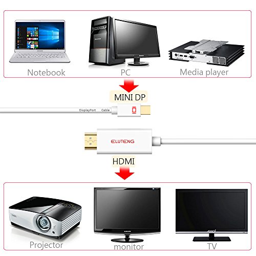 ELUTENG mini displayport to hdmi male cable, convert mini displayport signal to hdmi signal, apply to computer, laptop with mini dp / thunderbolt port to connect TV, Projector, Monitor.(1 Meter)