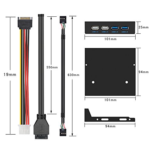 ELUTENG 3.5 Inch Front Panel with 2 USB 3.0 and 2 USB 2.0 ports, widely suitable for PCs with extra 3.5-inch floppy drive bay in the cmputer case.***not support CD-ROM.