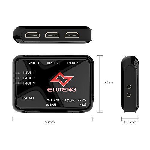 ELUTENG HDMI Switch 3 Porte HDTV Splitter 4K Supporta 3D per Computer, TV Set-top Box, DVD, PS3/PS4 ecc. Dispositivi display come TV, Display, proiettore ecc