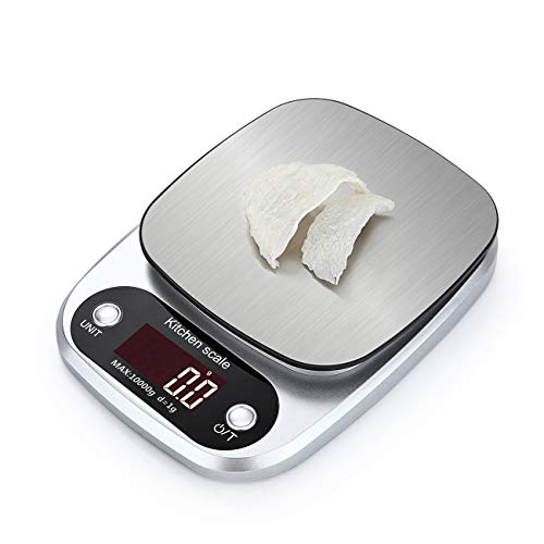 Elviray HT-C305 Bilancia da Cucina Bilancia Digitale Bilancia da Cucina Elettronica Portatile con Display LCD in Acciaio Inossidabile Precisa 10kg x 1g