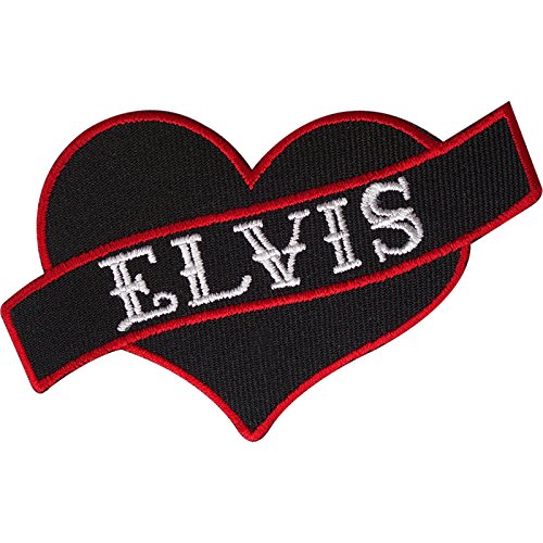 Toppa ricamata con scritta "Love Elvis Presley" a forma di cuore rock and roll musical