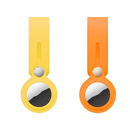 ELYCO [2 Pezzi] Cover Protettiva in Silicone Compatibile per Apple AirTag 2021, AntiGraffio, Anti-Lost Accessori Custodia con Portatile Nastro in Silicone per Airtags - Arancia & Giallo