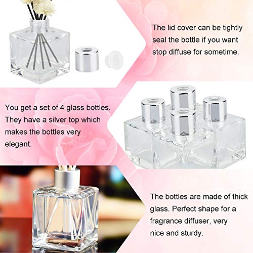 EMAGEREN 4 Pezzi Bottigliette di Vetro per Bastoncini Profumati Bottiglie Quadrate in Vetro Bottiglie di Diffusore in Vetro Contenitore per Oli Essenziali Profumati Bottiglie Diffusore con Tappi