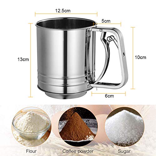 EMAGEREN Setaccio per Farina in Acciaio Inox Setaccio da Cucina setacci per Farina Setaccio per Farina e Zucchero a Velo 12,5 * 13 cm (Argento)