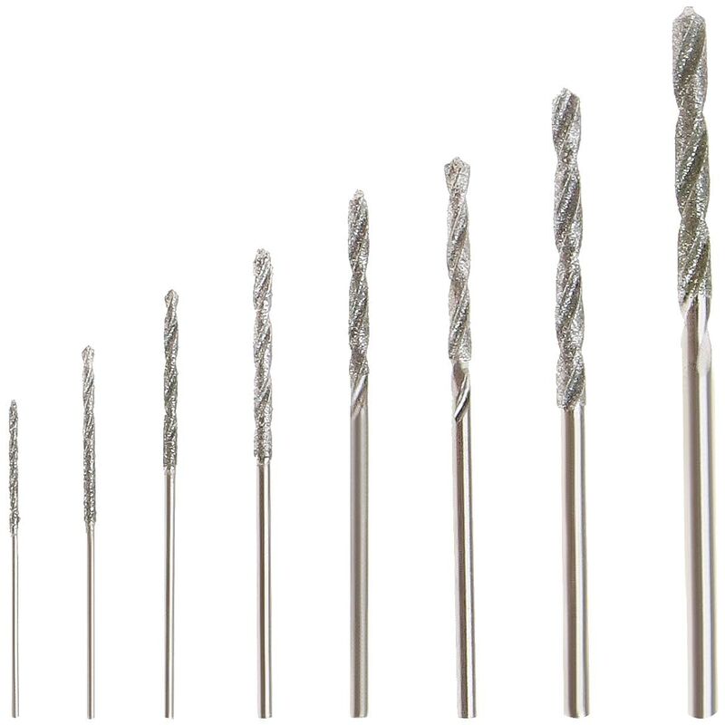Descrizione del prodotto: - La confezione include: 8 punte diamantate a spirale da 0,8 mm, 1,0 mm, 1,2 mm, 1,5 mm, 1,8 mm, 2,0 mm, 2,5 mm, 3,0 mm, ogni dimensione per 1 pezzo. Questo set di punte elicoidali ha diverse dimensioni per soddisfare le diverse esigenze di perforazione. - Materiale: realizzato in diamante, tecnologia a spirale, ha resistenza e durezza, non si rompe facilmente. La punta è affilata e facile da tagliare. - Applicabile: ampiamente usato in utensili rotanti come trapani a mano, trapani, alberi flessibili, trapani da tavolo e sedie a sospensione. - Applicazione: adatto per forare piccoli fori su vetro, metallo, conchiglie, giada, perle, biglie e pietre, cartongesso e così via. Grazie alla diversa durezza del materiale anche l'effetto è diverso. - Nota: l'aggiunta del refrigerante può aumentare l'efficienza di lavoro e prolungare la durata. Contenuto della confezione: 8 punte a spirale diamantate. Caratteristiche del prodotto: Materiale: diamante. Tipo: set di
