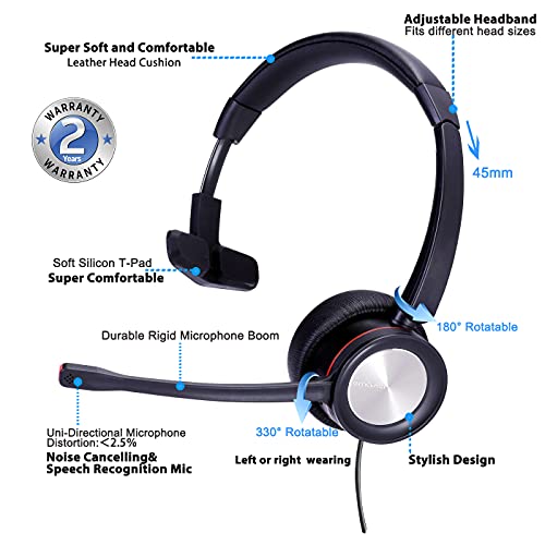 Emaiker Mono Cuffie da 3,5mm USB per computer Cuffie per PC con microfono per laptop