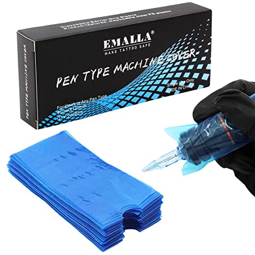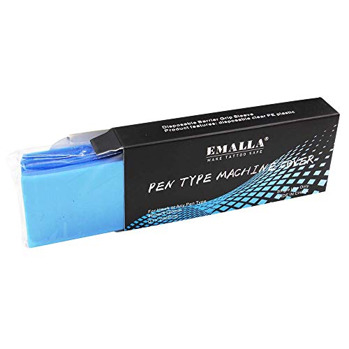 EMALLA - 200 custodie usa e getta per tatuaggi, impermeabili, blu, trasparenti, per penne e tatuaggi, kit per tatuaggi e accessori per tatuaggi