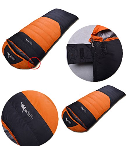 Emansmoer Adulto Resistente all'acqua Outdoor Portatile Busta Anatra giù Sacco a pelo rettangolare per Campeggio Escursionismo (Anatra giù(800g), Arancione)