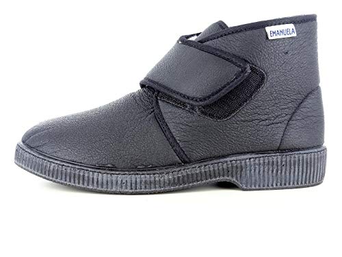 EMANUELA 591 Pantofola Uomo Alte Velcro Ecopelle Nero 39