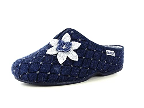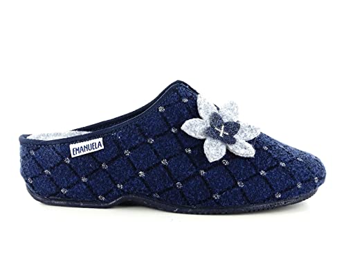 EMANUELA 3910 Sabot Pantofole Invernali da Donna di Panno, Blu, 37 EU