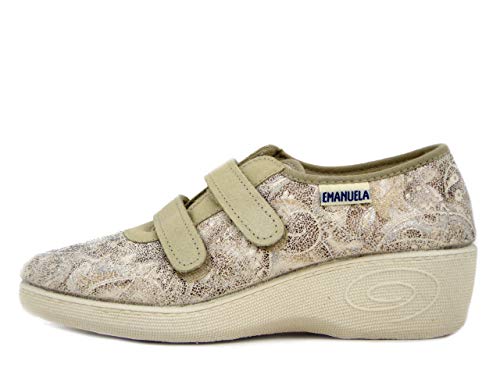 EMANUELA, Scarpa Donna Estiva Linea Comfort in Tessuto Beige, Chiusura a Strap, 2353