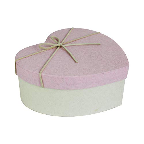 Emartbuy Set di 3 Lusso Rigido Confezione Regalo a Forma di Cuore, Scatola con Texture Crema con Coperchio Rosa Baby, Interno Rosa e Nastro Decorativo in Pelle Scamosciata