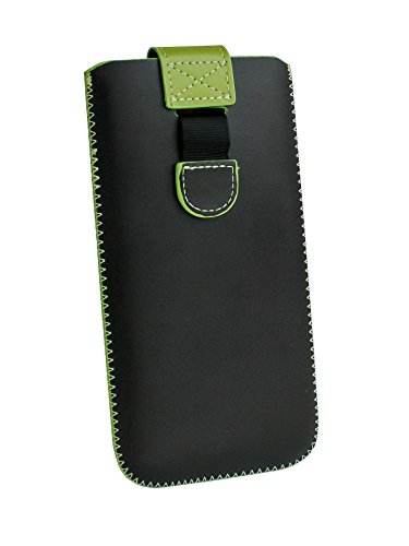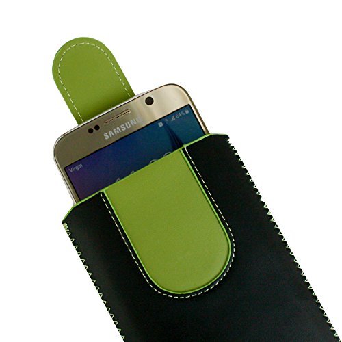Emartbuy Nero/Verde Cuoio PU Custodia Pouch Copertina Sleeve (Misura F) con Meccanismo Linguetta Compatibile con Smartphone Elencati di Seguito