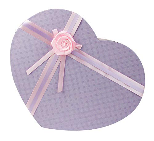 Emartbuy Rigid Luxury Heart Shaped Presentation Gift Box, 32.3 cm x 26.2 cm x 9 cm, Scatola Rosa Baby Con Coperchio Lilla, Interni Rosa e Fiocco a Strisce