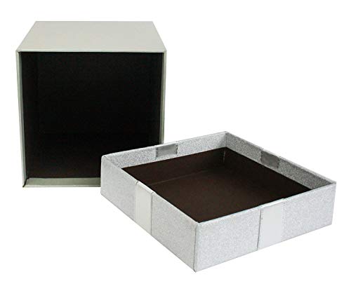Emartbuy Scatola Regalo, 11,5 x 11,5 x 12,7 cm, Grigia Con Coperchio Glitter Argento e Nastro Bianco
