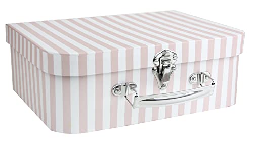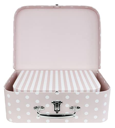 Emartbuy Set di 3 scatole regalo rigide per presentazioni, a pois e strisce, interno rosa con manico in metallo e chiusura