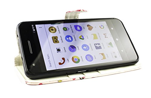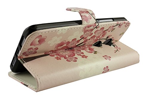 Emartbuy Vodafone Smart V8 PU Pelle Supporto Pieghevole Wallet Custodia Case Cover con Scomparti per Carte di Credito - Rosa Fiore