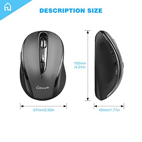 Emarth 2.4 G Wireless Optical Mouse con doppia rotella di scorrimento, ricevitore nano USB, 5 tasti 1600dpi Design ergonomico, per PC/Computer/Laptop (EELM612AG-Gr)