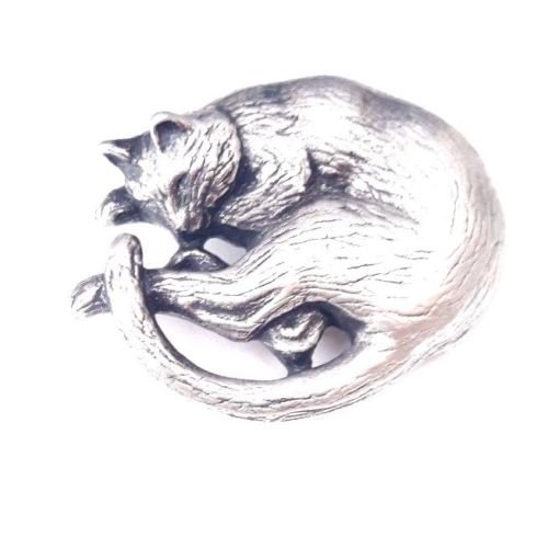 Emblems-Gifts Spilla a forma di gatto addormentato realizzata a mano in peltro inglese + distintivo da 59 mm + sacchetto regalo