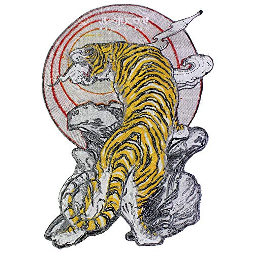 EMDOMO - Toppa termoadesiva, toppe con motivo animale per giacche, toppa ricamata decorativa per vestiti, motivo: tigre ruggente, 1 pezzo