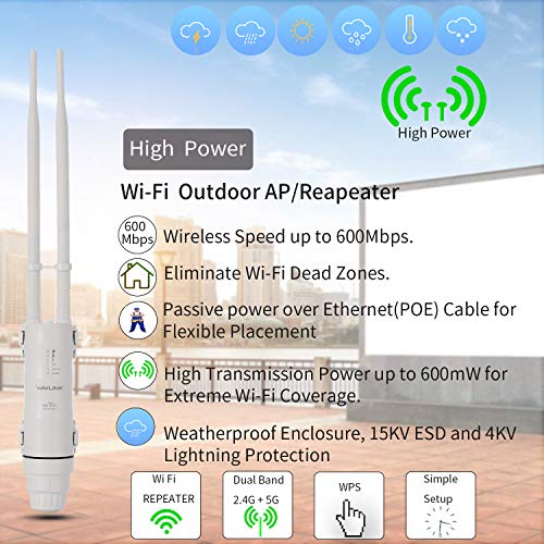 EMEBAY AC600 Dual Band Impermeabile Wi-Fi Ripetitore da Esterno Outdoor Range Extender Wireless Repeater Amplificatore di Segnale 2.4 GHz e 5 GHz, 802.11 AC Ampia Copertura a 200M