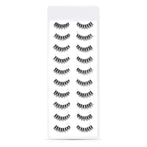 EMEDA Ciglia Finte Naturali 10 paia Banda Trasparente 100% Fatta a Mano Ciglia Naturali Ciglia Morbide e Wispy Risuonabili Natural False Lashes Mulipack Fake Eyelashes (DEMI)