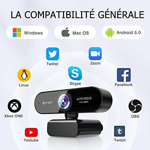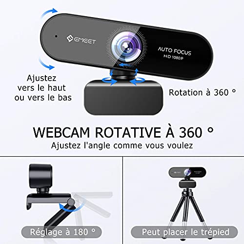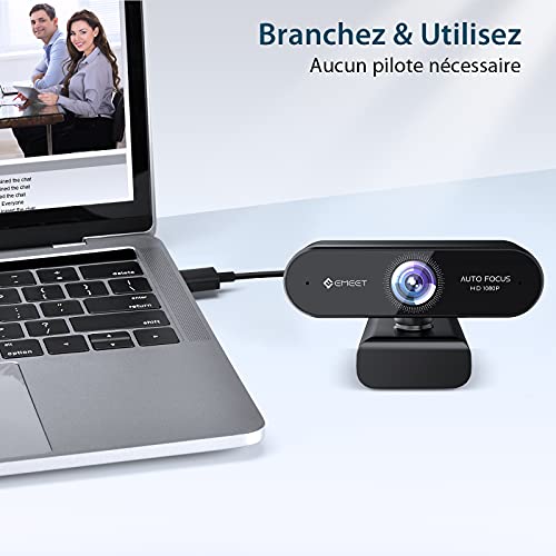 EMEET PC 1080p HD Webcam Nova Streaming Webcam Auto Focus con doppio microfono, USB Laptop Webcam, 96 ° Wide Angle, Plug & Play, per Linux, Win10, Mac