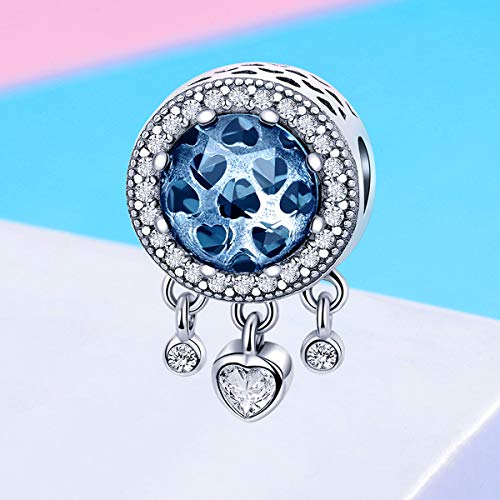 EMEMcharm Acchiappasogni Charm Vetro Argento 925 Dreamcatcher Beads Cuore Ciondolo Zirconia Regalo GM23 (Blu)