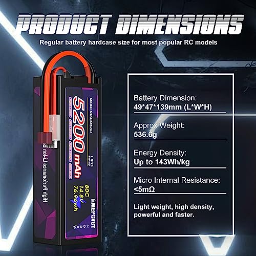 EMEPOVGY 14.8 V Lipo Batteria 4S 80C 5200mAh Lipos Custodia Rigida con Deans T Connettore per RC Auto Camion 1/8 1/10 RC Veicoli