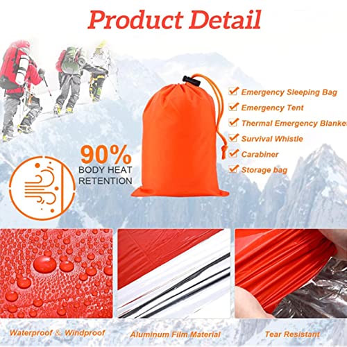 Emergency Survival Shelter Kit - Emergency Blankets Thermal Survival Blankets Camping Rescue Blanket Waterproof Lightweight Emergency Sleeping Bag for Camping Hiking Outdoor Activities