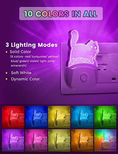 Emeritpro - Luce notturna per bambini, confezione da 2, luce notturna con 8 colori RGB e sensore da crepuscolo all'alba, ideale per illuminazione speciale e decorativa