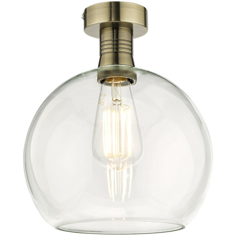 Dar Emerson Plafoniera semi-incasso Ottone antico Rotondo Vetro trasparente | Finitura: ottone antico, vetro | Classificazione IP: IP20 | Altezza: 29cm | Diametro: 22 cm | Tipo di lampada: E27 | N. di lampade: 1 | Lampadina inclusa: No | Peso: 0,75 kg | Potenza (massima): 60W