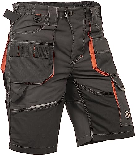 Emerton Plus Pantaloncini da Lavoro da Uomo Resistenti con Tasche multifunzionali e Cintura Elastica - Grigio/Arancio 64