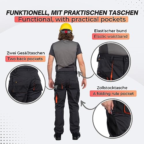 Emerton Pantaloni Da Lavoro Uomo - Pantaloni Cargo Uomo Estivi con Tasche Literali - Pantaloni Uomo Lavoro Estivi - Antinfortunistica Abbigliamento Cargo Estivi Uomo - grigio scuro/nero/arancione - 58