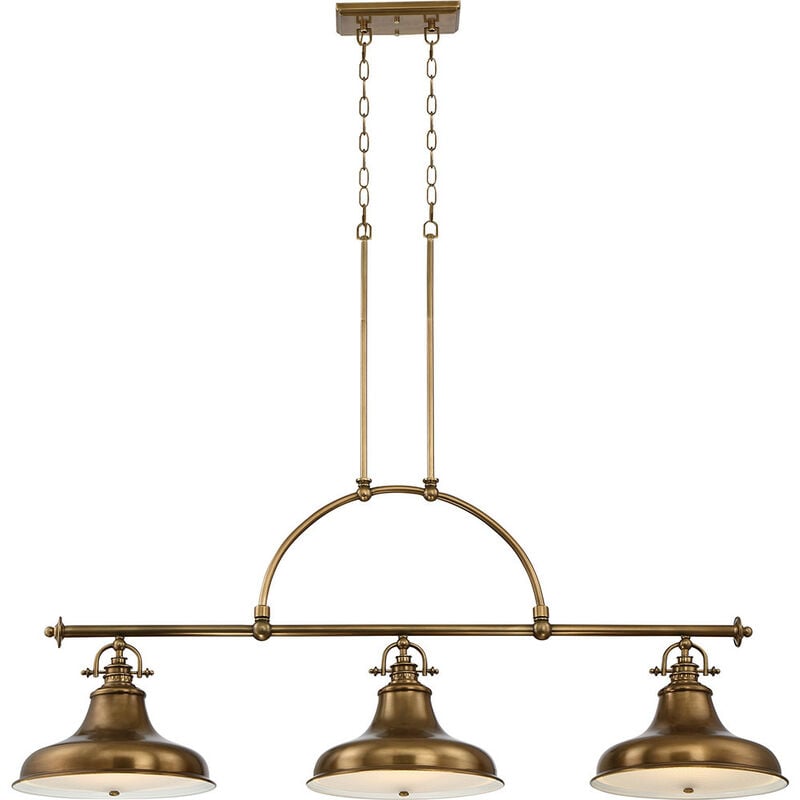 Elstead Emery - Lampadario a sospensione a 3 luci in ottone anticato, E27 | Finitura: ottone stagionato | Materiale: metallo | Classificazione IP: IP20 | Altezza min (cm): 73 | Altezza massima (cm): 198,4 | Diametro (cm): 133,4 | Numero di luci: 3 | Tipo di lampada: E27 | Dimmerabile: Sì | Potenza (max): 100