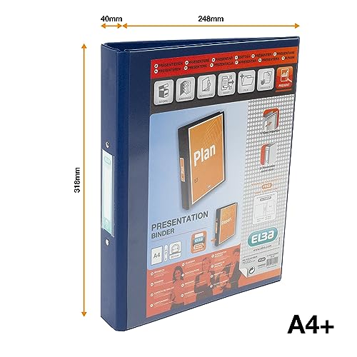 Emgee raccoglitore ad anelli in PVC con tasca frontale trasparente, 2 anelli tondi, misura 25 mm, A4 blu 590001 [Confezione da 10]
