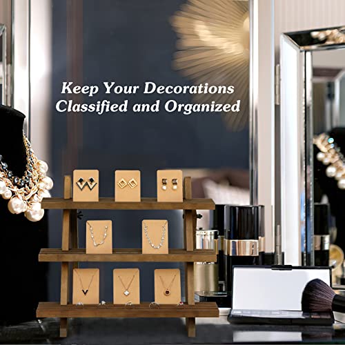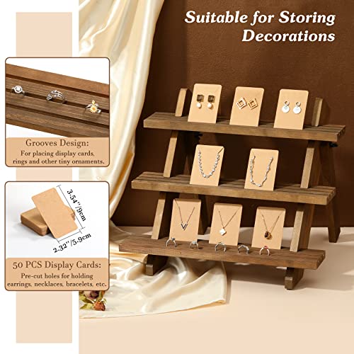 Emibele Espositore per Gioielli, Organizzatore per Orecchini in Legno, Supporto per Orecchini a 3 Strati con 50 Pz Cartoncini Espositivi per Collane e Orecchini, Porta Orecchini Vintage - Marrone