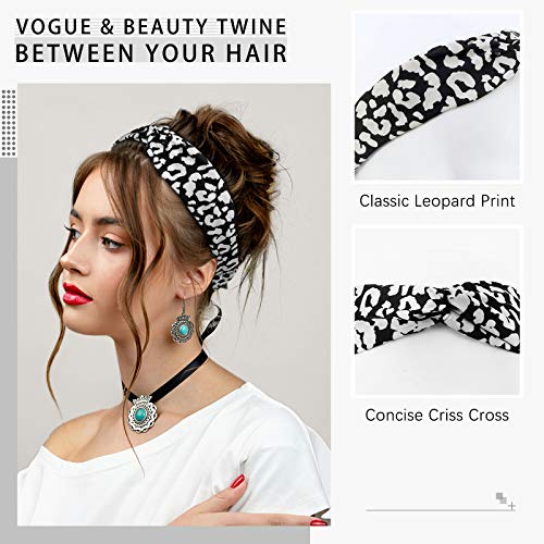 Emibele [5 Pezzi] Cerchietti per Capelli Donna Leopardo, Fasce per Capelli Elastiche Incrociate da Yoga Allenamento Sportivo Elastico Avvolto la Testa Contorta Accessorio per Capelli - Colorato