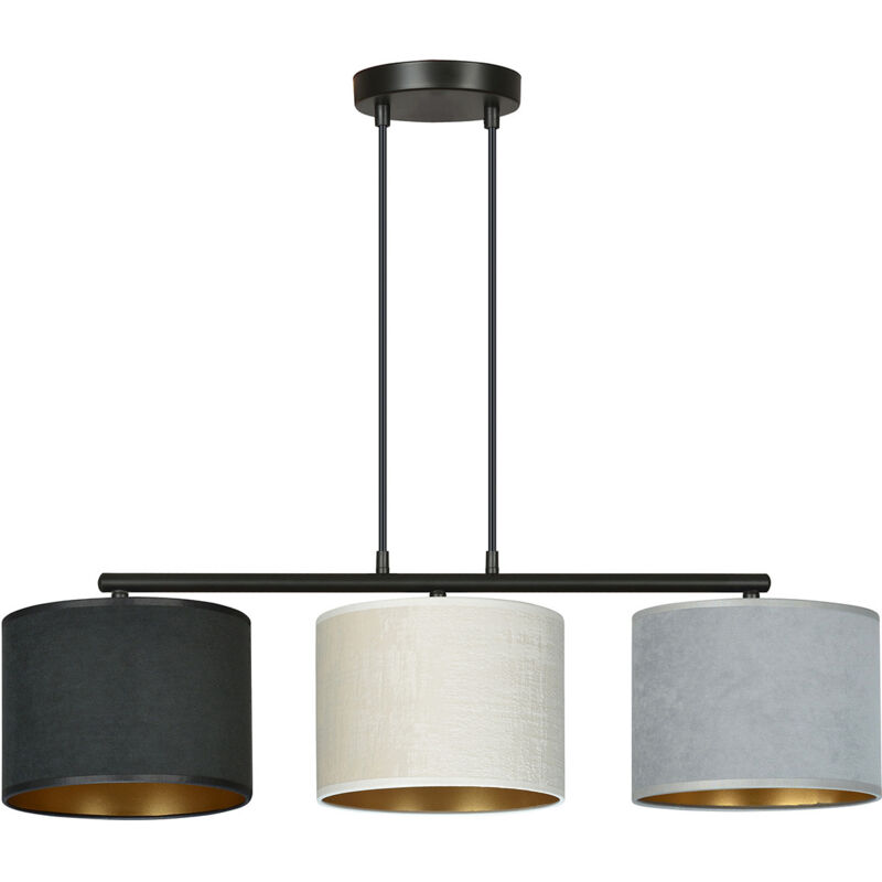 Emibig HILDE Plafoniera a sospensione a barra nera con paralumi in tessuto nero, grigio, bianco, 3x E27 | Finitura: nero | Materiale: acciaio, paralume in tessuto | Grado di protezione IP: IP20 | Altezza: 100 cm | Larghezza: 72 cm | Diametro paralume: 20 cm | Tipo di lampada: E27 | N. di lampade: 3 | Lampadina inclusa: non inclusa | Dimmerabile: Sì - Sono necessarie lampadine dimmerabili | Peso: 2,3 kg | Potenza (max): 60 W